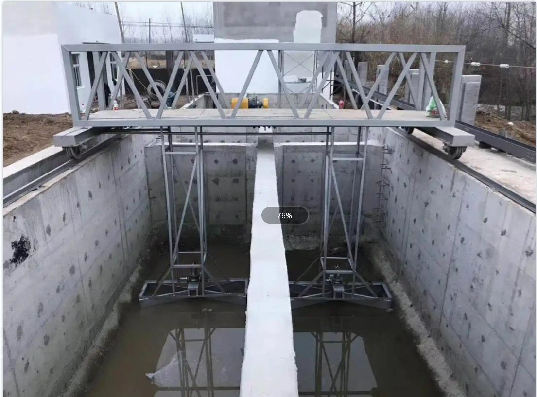 机器配备可升降的撇渣板,顺水流方向运行时刮板浸入水中,将浮渣推至池末端的渣槽;反向运行时刮板抬升,避免浮渣回流。